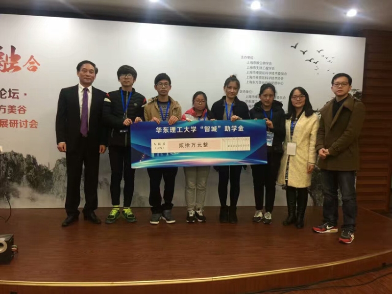 12月3日,36365线路检测登录入口院长庄英萍教授带领国家生化工程技术研究中心(上海)研究生、36365线路检测登录入口智城助学金获得者及部分本科生前往上海智城分析制造有限公司参加“建设中国论坛——2016上海东方美谷科学技术产业发展研讨会”并接受企业捐赠。