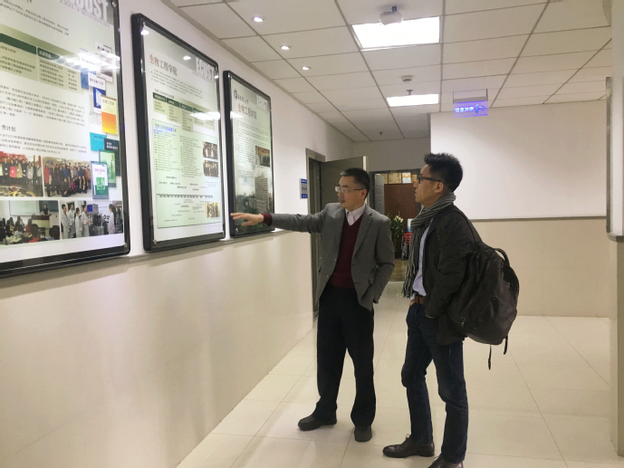 2017年11月11-17日,36365官网杰出校友、罗格斯大学田斌教授应我院应用生物学系邀请,回母校进行交流与授课。在陆兵书记陪同下,田斌教授参观了生物反应器工程国家重点实验室,并为我院近些年取得的巨大成就而感到欣喜。随后,田斌教授给我院研究生进行了“基因组学与生物信息学”的课程教学,为同学们展示了基因组学研究中生物信息学技术的应用,同时介绍了RNA加工中最新研究热点,课程极大地开阔了同学们的视野,课内田斌教授与同学们就学术问题也展开了热烈的讨论,同学们纷纷表示受益颇多。期间,田斌教授在吴海珍教授、范立强副教授的陪同下参观了奉贤新校区,见证着母校的蓬勃发展,田斌教授谈到每次回母校都为母校的发展而自豪,表示希望能通过努力搭建华理与罗格斯大学学生联合培养及学术交流的平台,为母校的发展添砖加瓦,也祝愿母校越来越好。