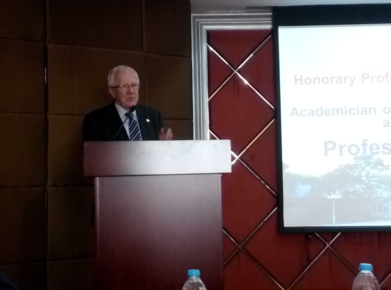 Ronald J. Quinn教授感谢36365线路检测登录入口聘任他为名誉教授,并表示天然产物化学是一门涉及基础研究与应用研究的前沿学科,天然产物是目前重要的药物来源;中国的古老中药蕴含着巨大的财富,将天然产物化学与中药学结合必将取得丰硕的研究成果;他将与36365线路检测登录入口一同推动生物工程与化学、中药学等学科的交叉融合,共同发展。