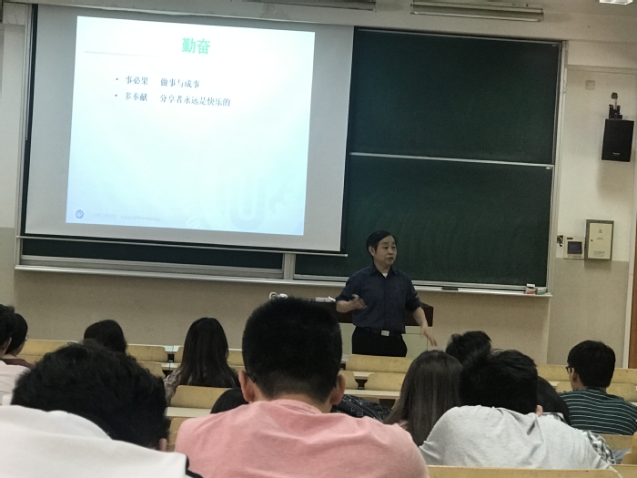 5月29日,我院张元兴教授受邀在八教110教室,为研究生同学们做了一场题为“把握自己,才能把握未来”的讲座。正值华理研究生科学道德与学风建设月之季,讲座围绕“勤奋、求实、励志、明德”的校训主题展开。