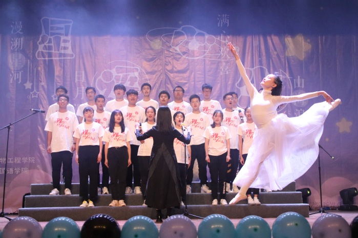 晚会以“仰望星空,脚踏实地”为主题,从弘扬传统文化的融合了新中国成立七十周年、奋斗最美、快乐校园生活等元素,一首改编rap《红色》,伴着《改革春风吹满地》的舞蹈,更是将晚会气氛推向高潮,迎来观众们的阵阵掌声。2019级新同学通过不同舞台形式展示了入学以来的精彩生活,表达了对创造未来校园美好生活的向往和决心。