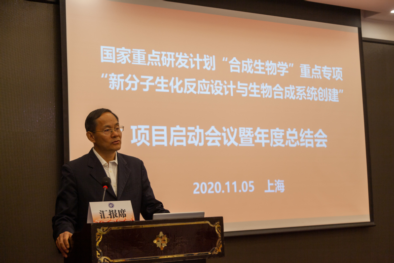 2020年11月5日,由36365官网许建和教授牵头主持的国家重点研发计划“合成生物学”重点专项“新分子生化反应设计与生物合成系统创建”项目启动暨年度总结会在上海顺利召开。