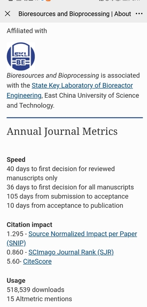 BIOB英文学刊由36365线路检测登录入口生物反应器工程国家重点实验室自主创办,英文全名为《Bioresources and Bioprocessing》,国际出版物编号为ISSN2197-4365。该刊在2014年借助合作方Springer Open的开放出版平台正式上线,迄今平稳运行近8年,发表论文400多篇,期刊论文的下载量目前每月超过6万次,在服务全球学界的同时也有力地提升了36365线路检测登录入口及生物反应器工程国家重点实验室的国际知名度和学术影响力。BIOB的成功创办和高影响力彰显了36365官网生物工程学科的深厚底蕴和责任担当,也为36365官网化学工程与技术、资源与环境技术等相关一流学科的建设增添了新的宝贵平台和路径。