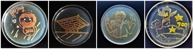 本次微生物竞赛从3月26日开始,历经初赛、复赛和决赛三个阶段。为了迎接中国共产党成立100周年,微生物竞赛组委会的评委老师们从60组上百幅初创草图中筛选出具有家国情怀、构思新颖的15个小组参加了决赛。在决赛阶段,组委会的老师和研究生们在学院实验中心的支持下,对微生物操作零基础的同学们进行手把手的细致指导,最终使构想的草图顺利展现在平板上。一个个小小的平板承载了老师和同学们拳拳的爱党、爱国、爱校的动人情怀。