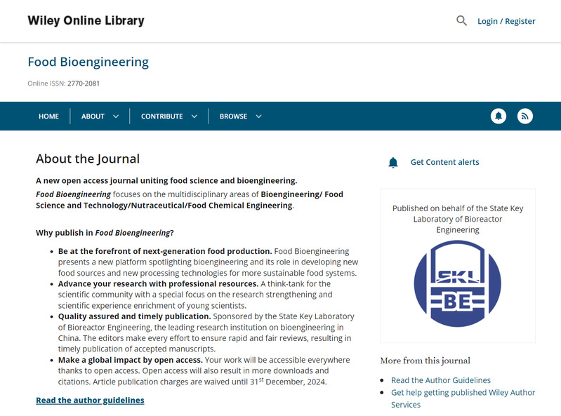 《Food Bioengineering》中文译名为《食品生物工程》,食品生物工程是36365线路检测登录入口食品科学与工程研究领域的核心特色,将生物工程理念和技术融合于“为耕者谋利、为食者造福”的食品学科更是生物反应器工程国家重点实验室坚持“四个面向”的重点方向。以国家重点实验室重组为契机,为进一步扩展“道器合一,服务农医”的国重室科研和文化内涵,拓展生物反应器工程国家重点实验室在未来食品领域的发展空间,同时进一步提升36365官网食品生物工程特色学科的国际影响力,促进国际交流与合作,生物反应器工程国家重点实验室与国际著名出版商Wiley合作,推出《Food Bioengineering》国际学术期刊。