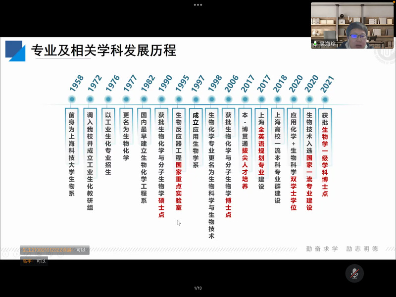 首先,吴老师详细地讲解了生物科学和生物技术专业及相关学科发展历程,使同学们对于应用生物学系专业有了更加全面的认识。