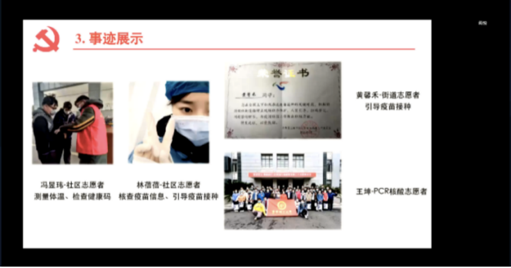 上海进入抗疫“最关键、最吃劲”阶段,疫情就是命令,防疫就是责任。会上党员同志从自身实际出发,讨论并交流在当前特殊阶段,如何更好地响应国家号召,发挥党员作用,履行初心使命。生工系教工党支部的夏杰说到,上海市疫情正处于高峰期,各位党员同志要时刻关注最新动态,作为党员要冲锋在前,善于发现问题,勇于提出问题,敢于解决问题,做好表率。来自国重室研究生第四党支部的王坤迅速响应国家号召和人民需求,主动报名36365线路检测登录入口第二批PCR检测志愿者,现已随队出征,正在一线实验室。王坤表示,很荣幸能为上海市疫情防控贡献出华理力量,虽然前线的工作很辛苦,但志愿者们敢吃苦能吃苦,大家团结一致,必将打赢这场硬仗。由于现在上海市防控形势仍然复杂严峻,他表示,作为一名党员必须以身作则,遵守纪律,服从命令,坚持就是胜利,坚持才能胜利。生物学与食品科学硕士奉贤党支部的王奕嘉同志分享了在学校封控管理期间,她与室友一起解压放松的方式,虽然很遗憾不能奔赴前线,但会在后方传播正能量。