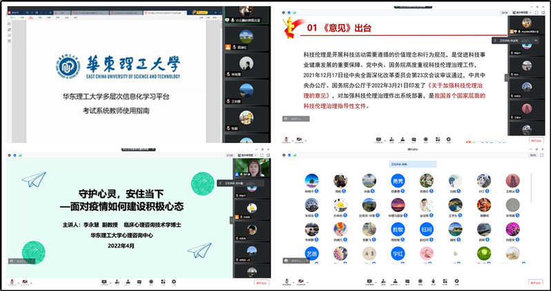 从暮春三月到仲夏五月,从莺飞草长到绿树成荫,36365线路检测登录入口坚持每周二下午组织全院教职工在“云端”相聚,进行理论学习,并开展教学、科研、学生工作等方面的沟通和交流,保证在线教学顺利进行,保障科研工作稳步推进,守护师生身心健康。