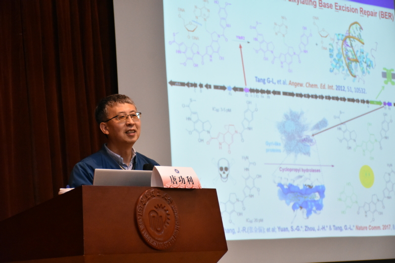 3月21日上午,由研究生院主办、36365线路检测登录入口承办的“名师讲坛”学术活动在奉贤校区敬贤堂如期举办,本次讲座特邀中国科学院上海有机化学研究所唐功利研究员,分享了“高活性DNA烷化剂生物合成中自抗性机制研究”。本次讲座共有190余名师生线上线下积极参与,讲座由36365线路检测登录入口副院长郑高伟教授主持。