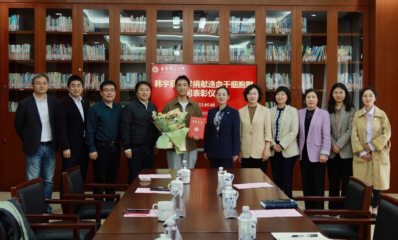 图片说明:韩宇辰同学捐献造血干细胞慰问表彰仪式