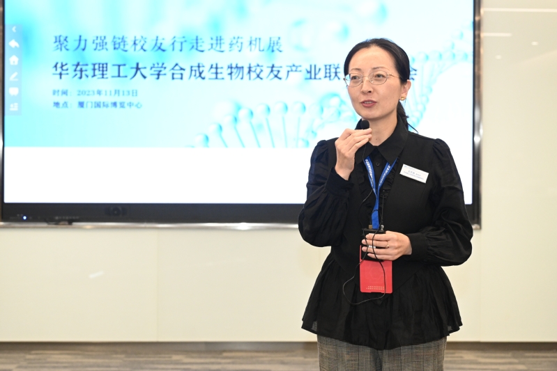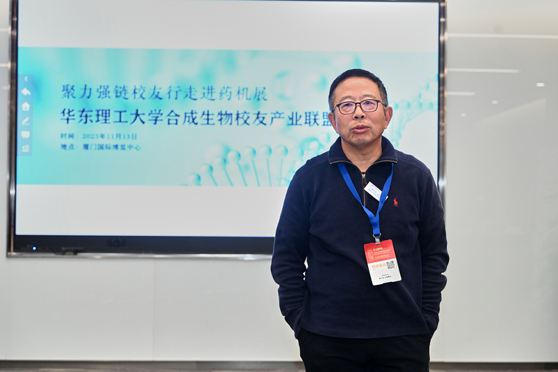 11月13日,借第63届全国制药机械博览会暨中国国际制药机械博览会(以下简称“药机展”)举办之际,华理合成生物产业校友联盟筹备会在厦门举办。本次活动由36365线路检测登录入口校友会联合36365线路检测登录入口生物医药行业校友会主办,药机展组委会协办。药机展组委会主要成员、生化85级校友遆倩敏热情接待来访校友。36365线路检测登录入口校友与发展联络处副处长王芝眉,生工学院校友会理事长黄予良、名誉理事长陆兵、华理生物医药行业校友会理事长蔡水洪等70余位华理校友企业家参与活动。