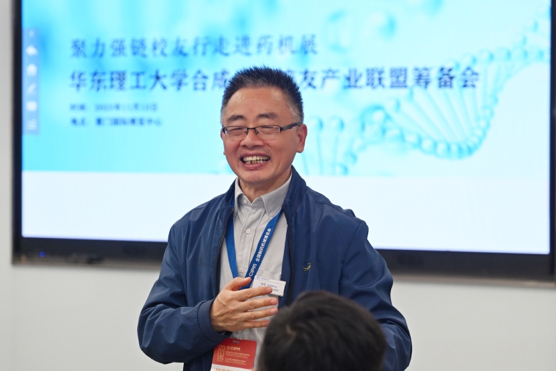 黄予良阐述了筹备华理合成生物校友产业联盟的设想,联盟以一带一路和国内国外双循环为理念,发挥各自在产业链的优势,致力完成国内外合成生物领域重大项目。