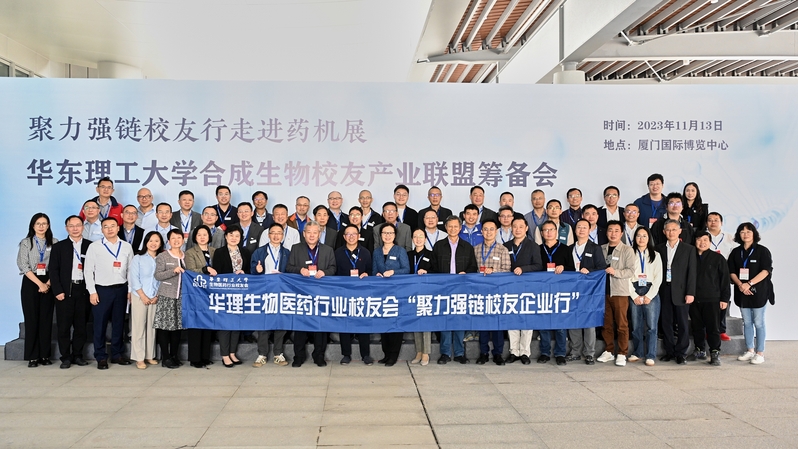 11月13日,借第63届全国制药机械博览会暨中国国际制药机械博览会(以下简称“药机展”)举办之际,华理合成生物产业校友联盟筹备会在厦门举办。本次活动由36365线路检测登录入口校友会联合36365线路检测登录入口生物医药行业校友会主办,药机展组委会协办。药机展组委会主要成员、生化85级校友遆倩敏热情接待来访校友。36365线路检测登录入口校友与发展联络处副处长王芝眉,生工学院校友会理事长黄予良、名誉理事长陆兵、华理生物医药行业校友会理事长蔡水洪等70余位华理校友企业家参与活动。