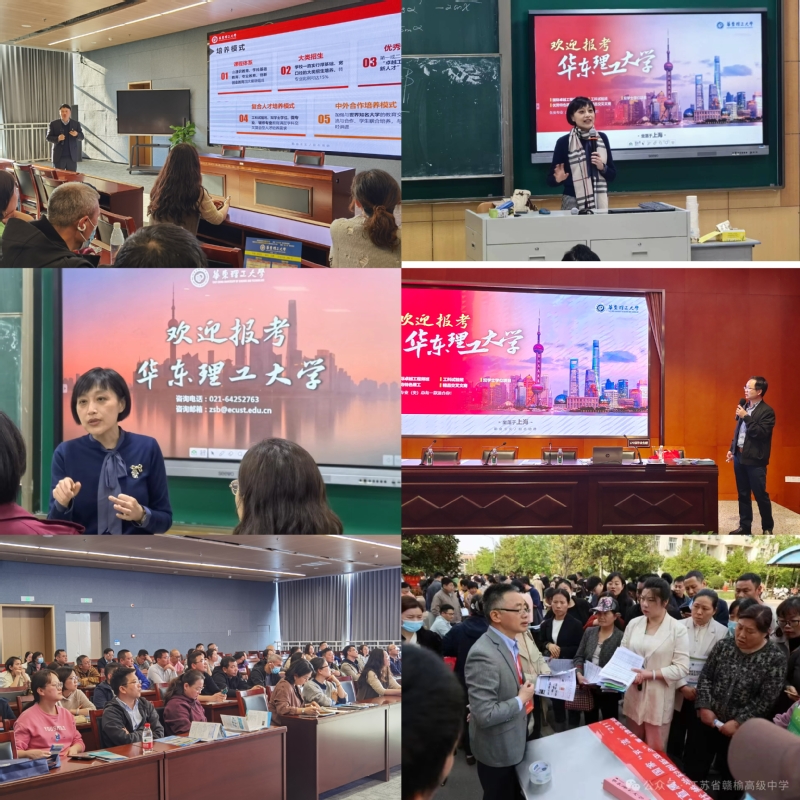生工学院副院长王启要教授来到苏州星海高级实验中学,为高考学子和家长带来精彩的报告,针对家长和学生关心的招生相关政策、专业设置、人才培养、就业和深造等热点话题逐一细致解答,积极为华理招生宣传。谢静莉教授专门走访了南京市中华中学和南京金陵中学,在中华中学设置招生信息宣传摊位,为家长和学子分发了招生宣传资料,面对面解答相关问题,在金陵中学作了逻辑清晰、重点突出的招生宣传报告,并现场为学生和家长答疑解惑。蔡孟浩教授、王申林教授、张建副教授和王善利老师到通州中学、徐州中学、海安高级中学作招生政策宣传讲座。陆兵老师在淮安、连云港多所重点高级中学进行了招生政策宣传。