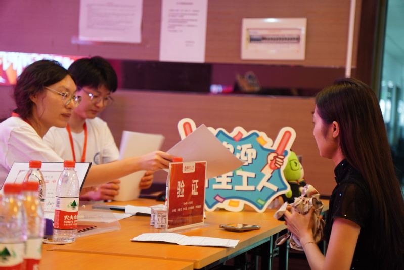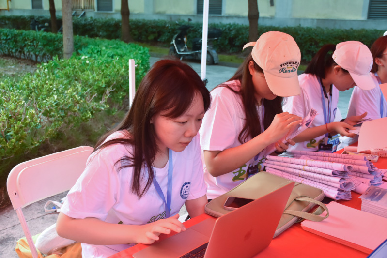 报到点位,志愿者同学各司其职,新生们有序地完成了报到流程,核对新生证件,提交报到材料,领取校园卡、宿舍钥匙、体检单并现场签字确认。炎热天气下志愿者们始终热情周到,彰显生工学子良好风貌。