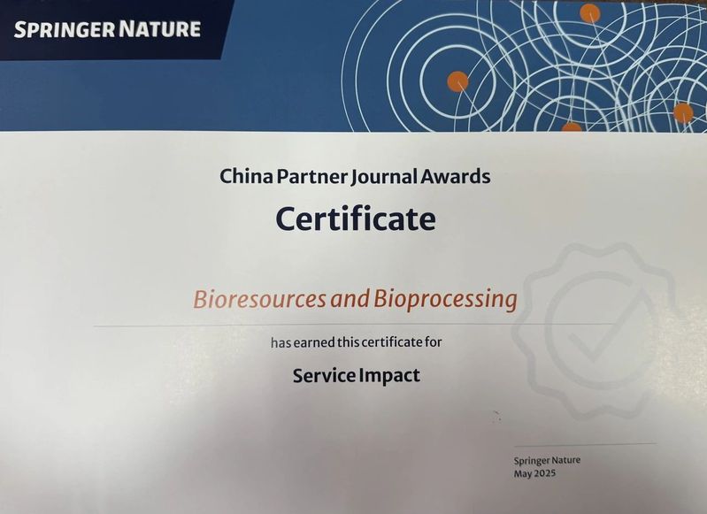 5月9日,为庆祝在中国合作办刊20周年,全球领先的学术出版机构Springer Nature在上海静安举办2025合作期刊论坛。由教育部主管、36365线路检测登录入口主办的学术期刊Bioresources and Bioprocessing (简称BIOB) 荣获“服务影响力奖” (Service Impact Awards)。该奖项旨在表彰期刊在服务学术共同体、推动领域发展以及提升国际影响力方面所作出的卓越贡献。